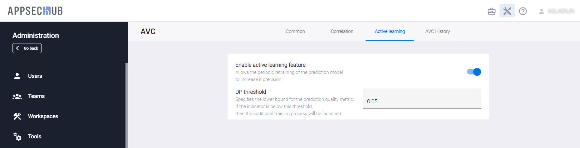 - Enable active learning feature — включение функции периодического переобучения предиктивной модели анализа проблем безопасности для повышения достоверности результатов.