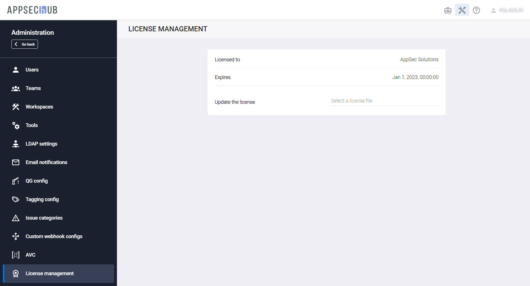 Управление лицензией AppSec.Hub
