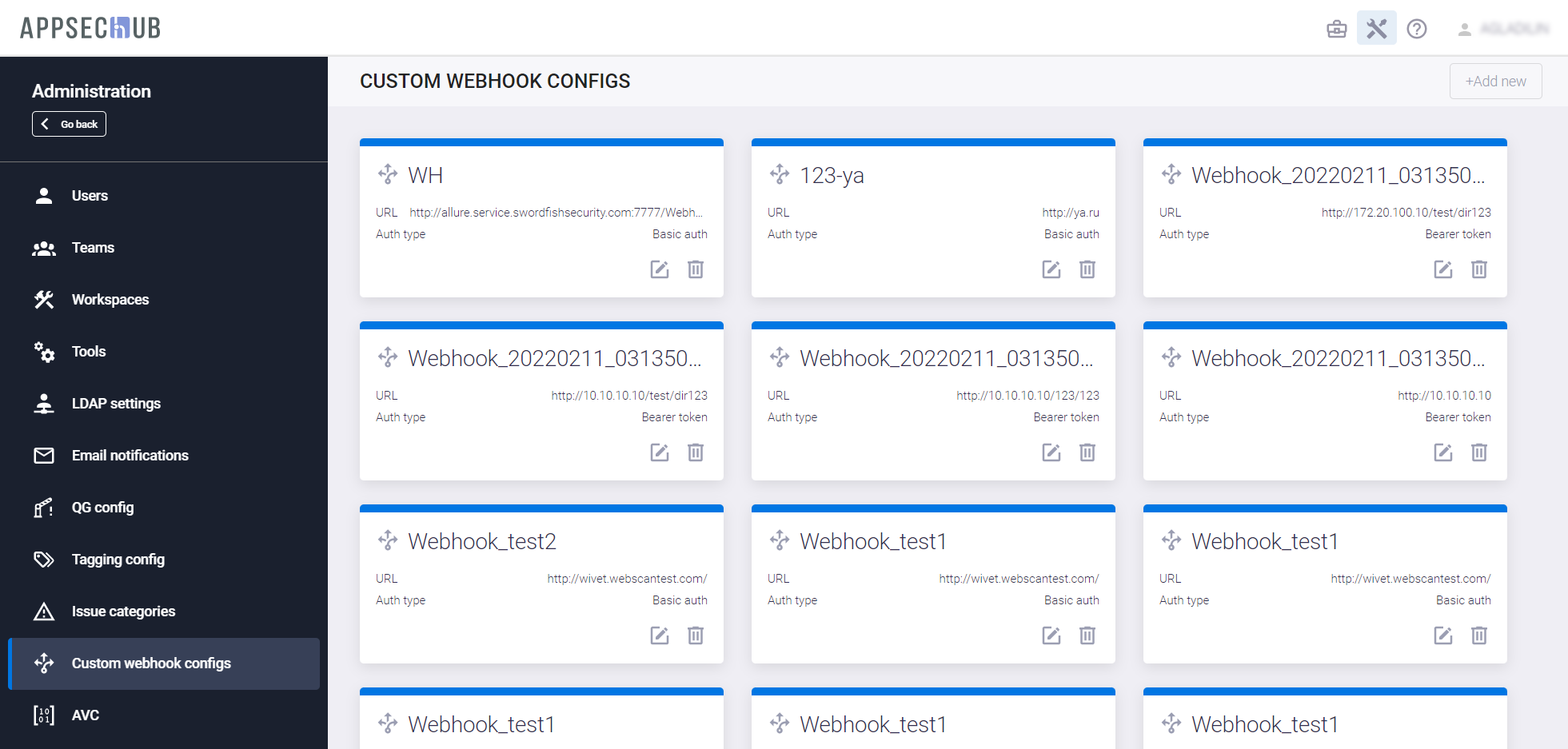 , расположенную в правом верхнем углу пользовательского интерфейса, а затем слева выберите пункт меню Custom Webhook Configs.