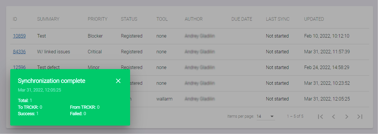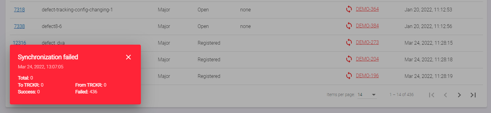 Чтобы синхронизировать созданные дефекты с проектной системой отслеживания дефектов, нажмите кнопку Sync with tracker.