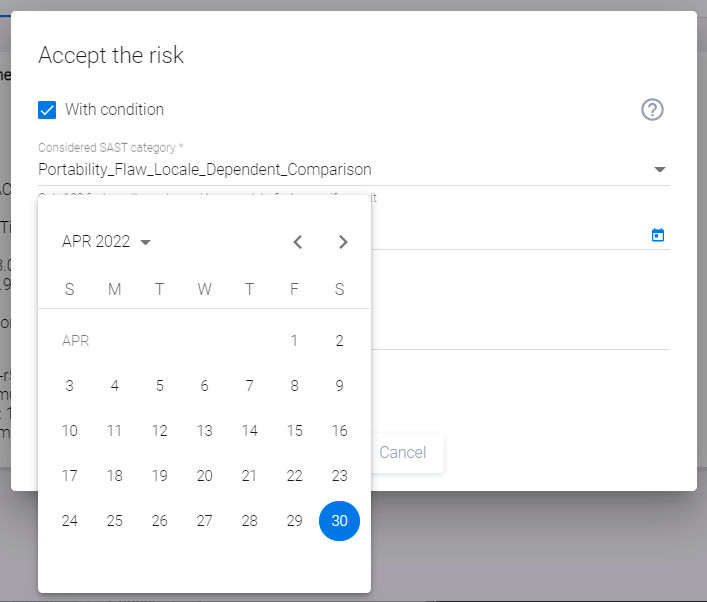 - CONDITIONAL SAST CATEGORY — используемое SAST категория (условие) в случае условного принятия риска.
