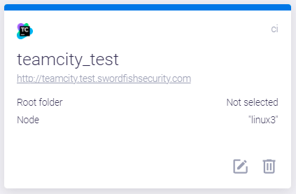 Карточка инструмента оркестрации представляет соответствующий инструмент для этого пайплайна (TeamCity). Эта карточка позволяет настроить параметры инструмента оркестрации с помощью иконки редактирования