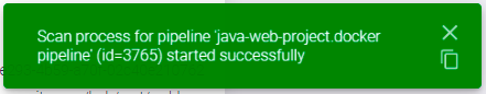 При запуске такого Security Pipeline в правом нижнем углу пользовательского интерфейса отображается подтверждающее уведомление, но фактически сканирования не выполняется и в истории сканирования (вкладка Scans) отображается соответствующее предупреждение.