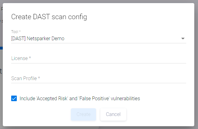 В появившемся окне Create DAST scan config выберите инструмент в поле Tool.