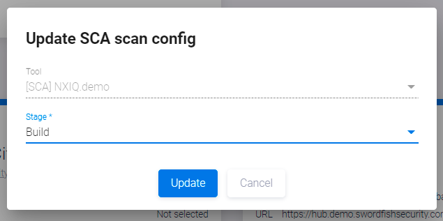 на карточке инструмента сканирования, чтобы настроить параметры сканирования в окне Update SCA scan config.