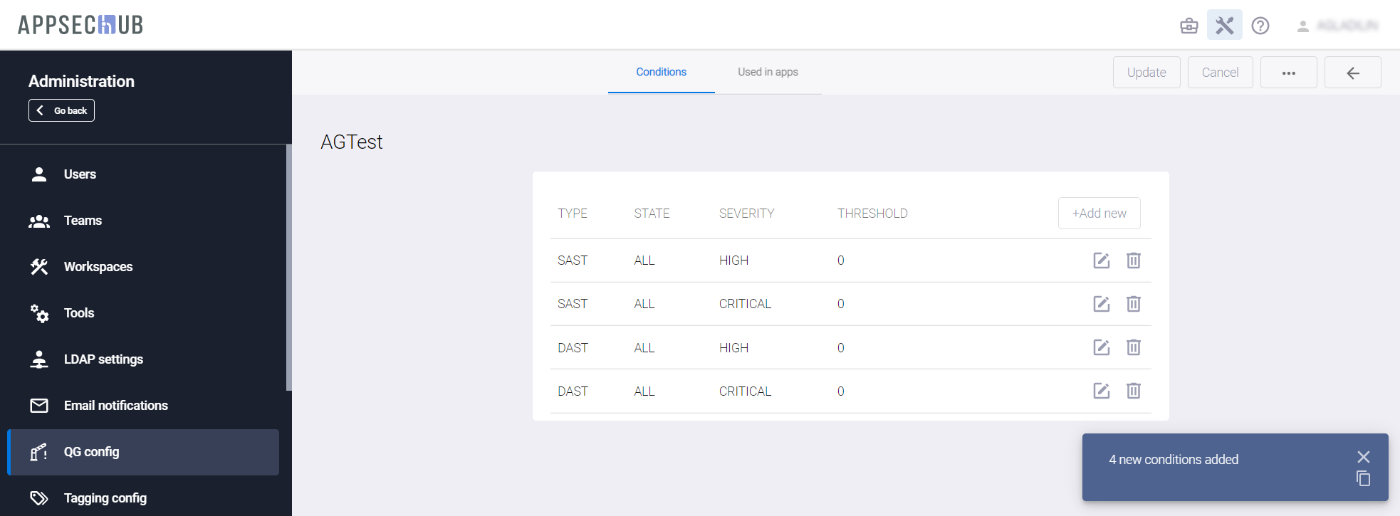 Обратите внимание, что AppSec.Hub автоматически обновляет настройки в самом инструменте Checkmarx — никакие дополнительные действия пользователя не требуются.