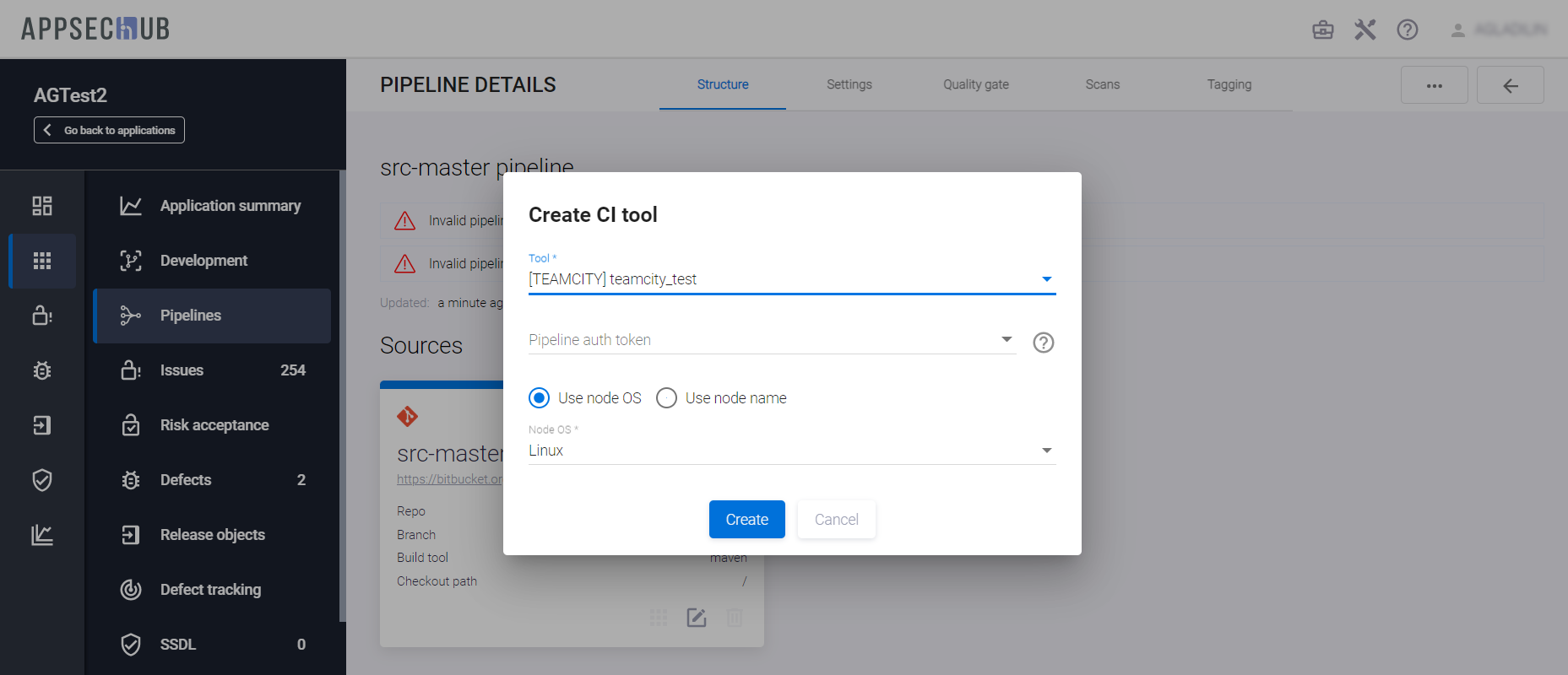 . Важно заметить, что для корректного завершения onboarding (см. раздел «Onboarding») необходимо наличие в AppSec.Hub предопределенного шаблона Security Pipeline. В качестве такого шаблона может использоваться любой ранее созданный для данного приложения Security Pipeline соответствующего типа (для кодовых баз, артефактов и т. д.). Если для приложения определено несколько Security Pipelines одного типа, для предсказуемого завершения интеграции важно для нужного Security Pipeline активировать опцию Is template — вновь автоматически создаваемые Security Pipelines для данного приложения будут использовать выбранный шаблон.