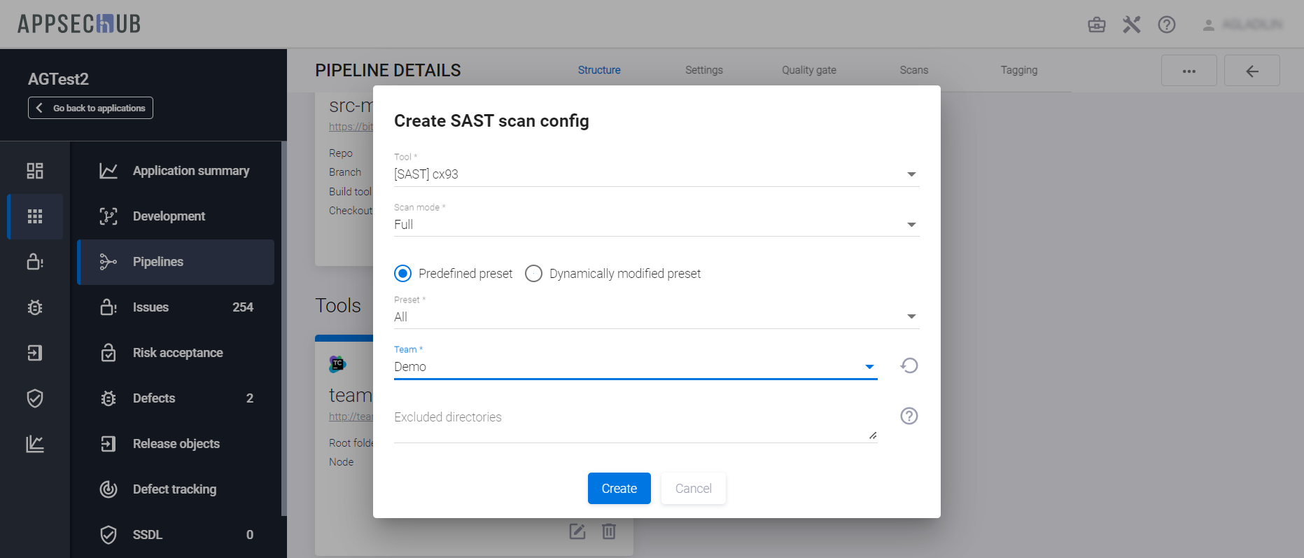 - Predefined preset/Dynamically modified preset — выбор предустановленного или динамического пресета, который будет использоваться при сканировании. Более подробная информация об использовании динамических пресетов для инструмента Checkmarx приведена в разделе «Security Pipeline исходного кода».