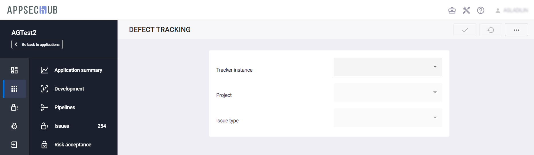 Выберите пункт меню Defect tracking в меню, расположенном слева.