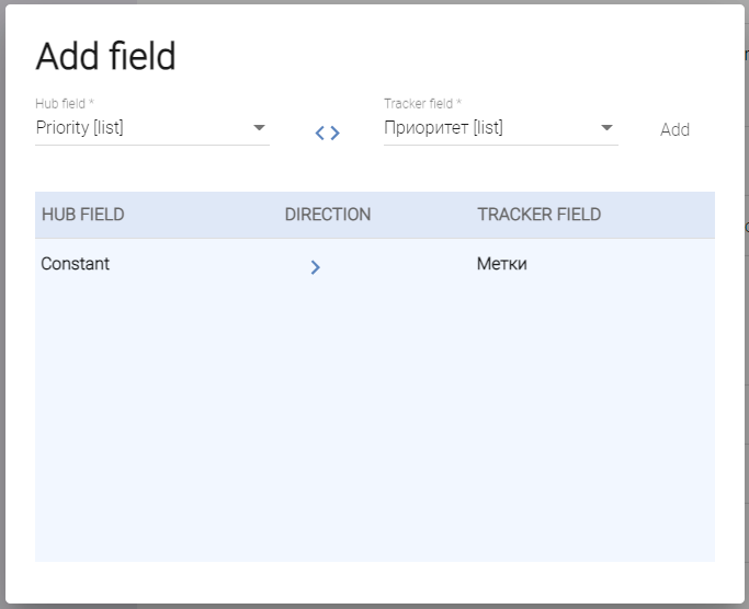 , расположенную в строке справа, чтобы изменить синхронизацию на двунаправленную. Появится окно редактирования поля Edit field. В этом окне несколько раз нажмите на указатель направления > между полями Hub field и Tracker field. Значок направления при этом меняется между знаками однонаправленной синхронизации > и <, и знаком двунаправленной синхронизации <>.