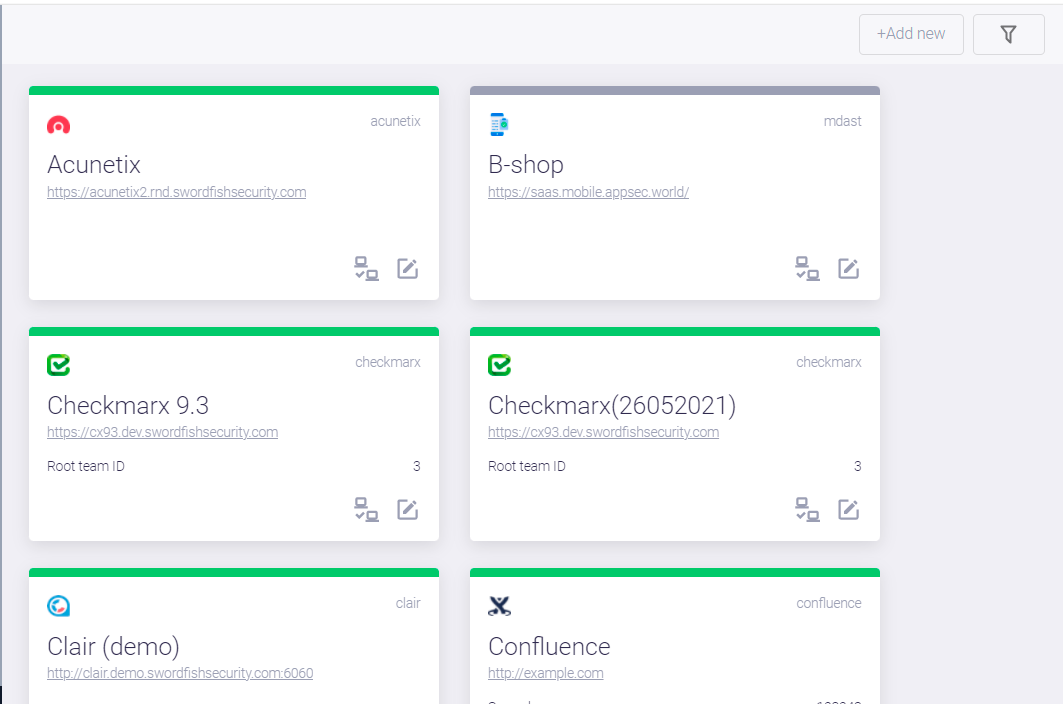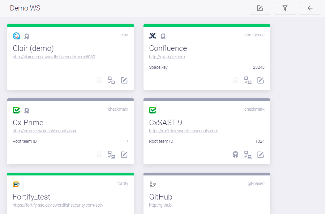 В AppSec.Hub предоставляется возможность найти и отфильтровать существующие рабочие пространства с использованием выпадающих меню — по названию команды by team name, по инструменту by tool product и по названию приложения by app name — с помощью нажатия кнопки Show filters