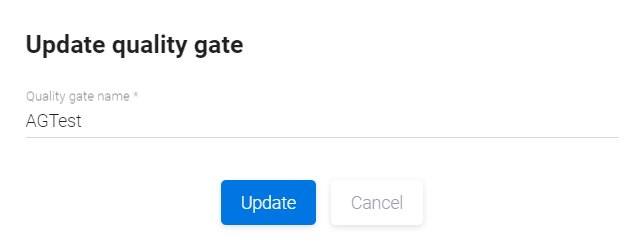В появившемся диалоговом окне укажите новое наименование Quality Gate и нажмите кнопку Update.