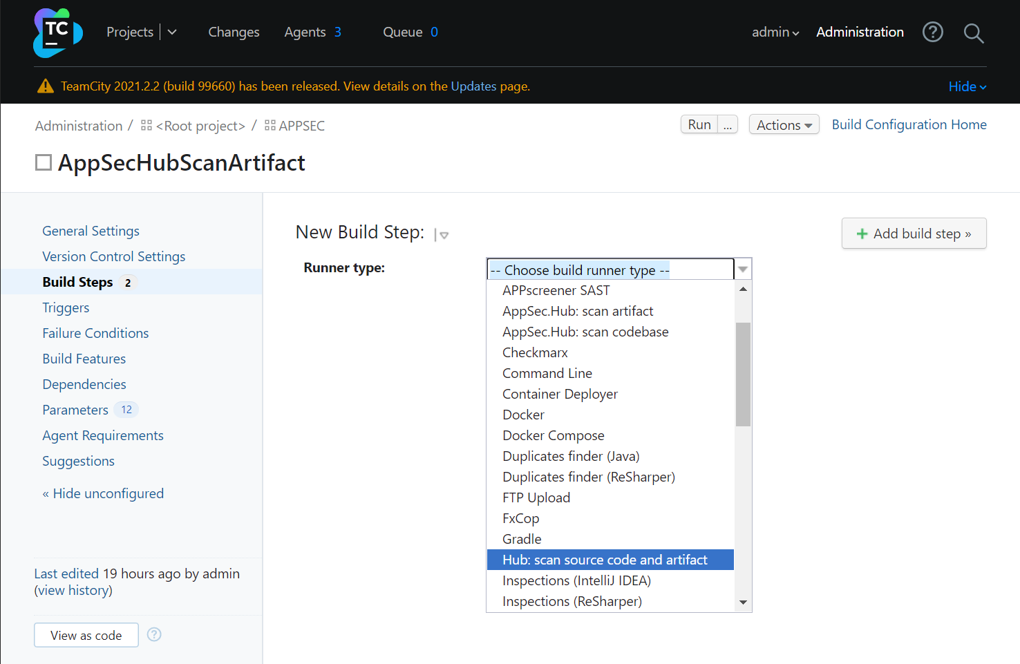 - Step name — наименование этапа пайплайна (Build Step), например, AppSec.Hub Meta-Runner.