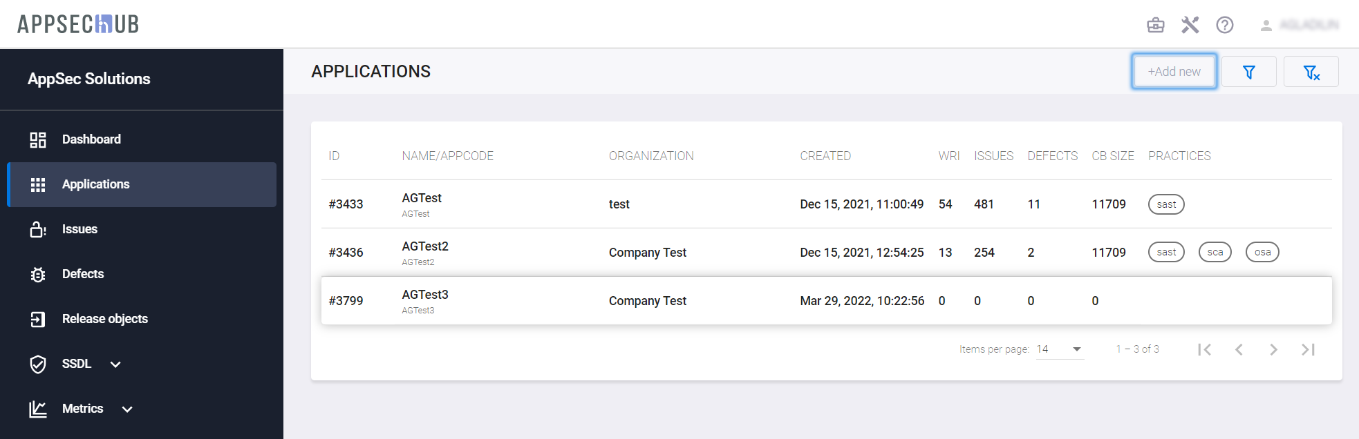 Выберите пункт меню Applications и нажмите кнопку +Add new, чтобы создать новое приложение.