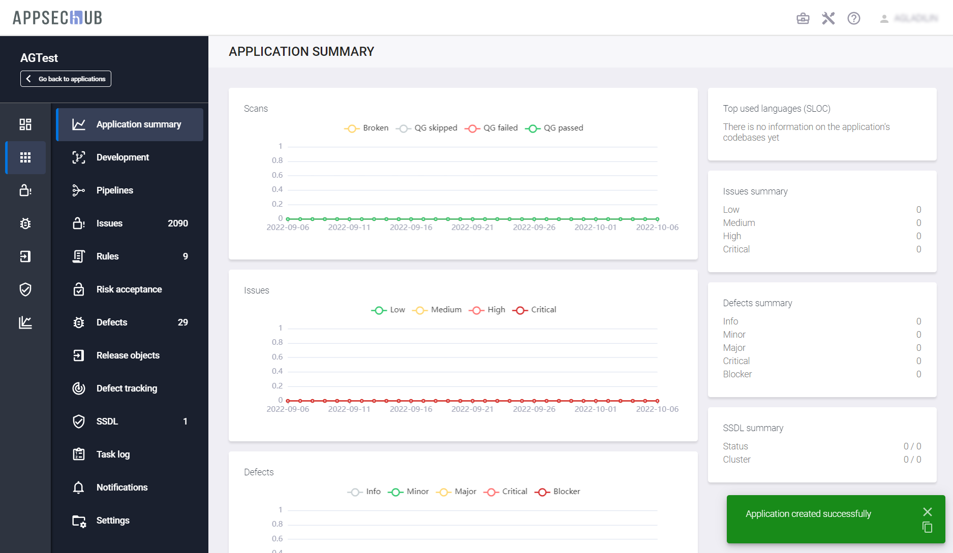 Если процесс создания приложения завершился успешно, в правом нижнем углу страницы Applications появится соответствующее подтверждающее сообщение.