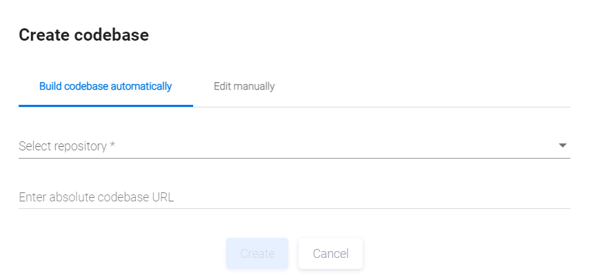 Выберите пункт меню Development, а затем нажмите кнопку +Add new в правом верхнем углу вкладки Codebases, чтобы добавить новую кодовую базу. На экране появится окно Create codebase.