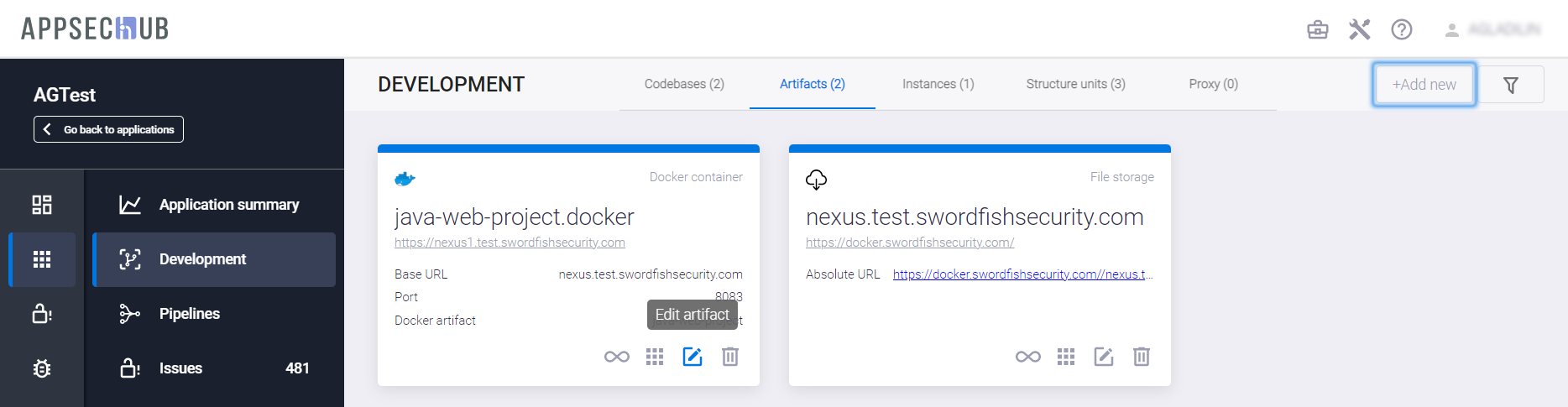 Выберите пункт меню Development, а затем нажмите кнопку +Add new в правом верхнем углу вкладки Artifacts, чтобы добавить новый артефакт, или нажмите на иконку Edit artifact
