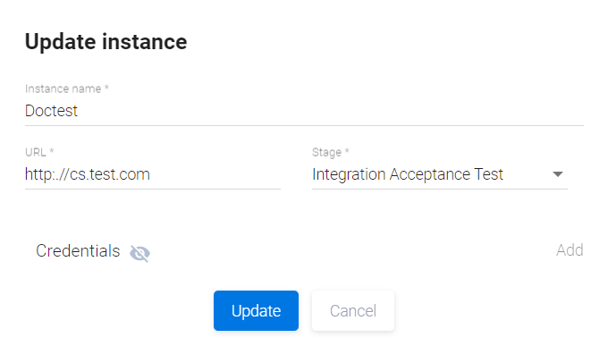 На экране появится окно Update instance.