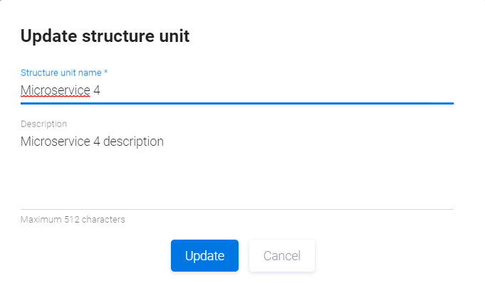 Введите имя и описание структурной единицы и нажмите кнопку Update.