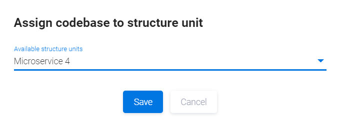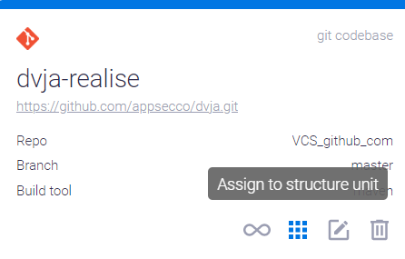 на карточке кодовой базы (см. вкладку Codebases), артефакта (Artifacts) или экземпляра (Instances), чтобы отнести этот элемент к структурной единице.