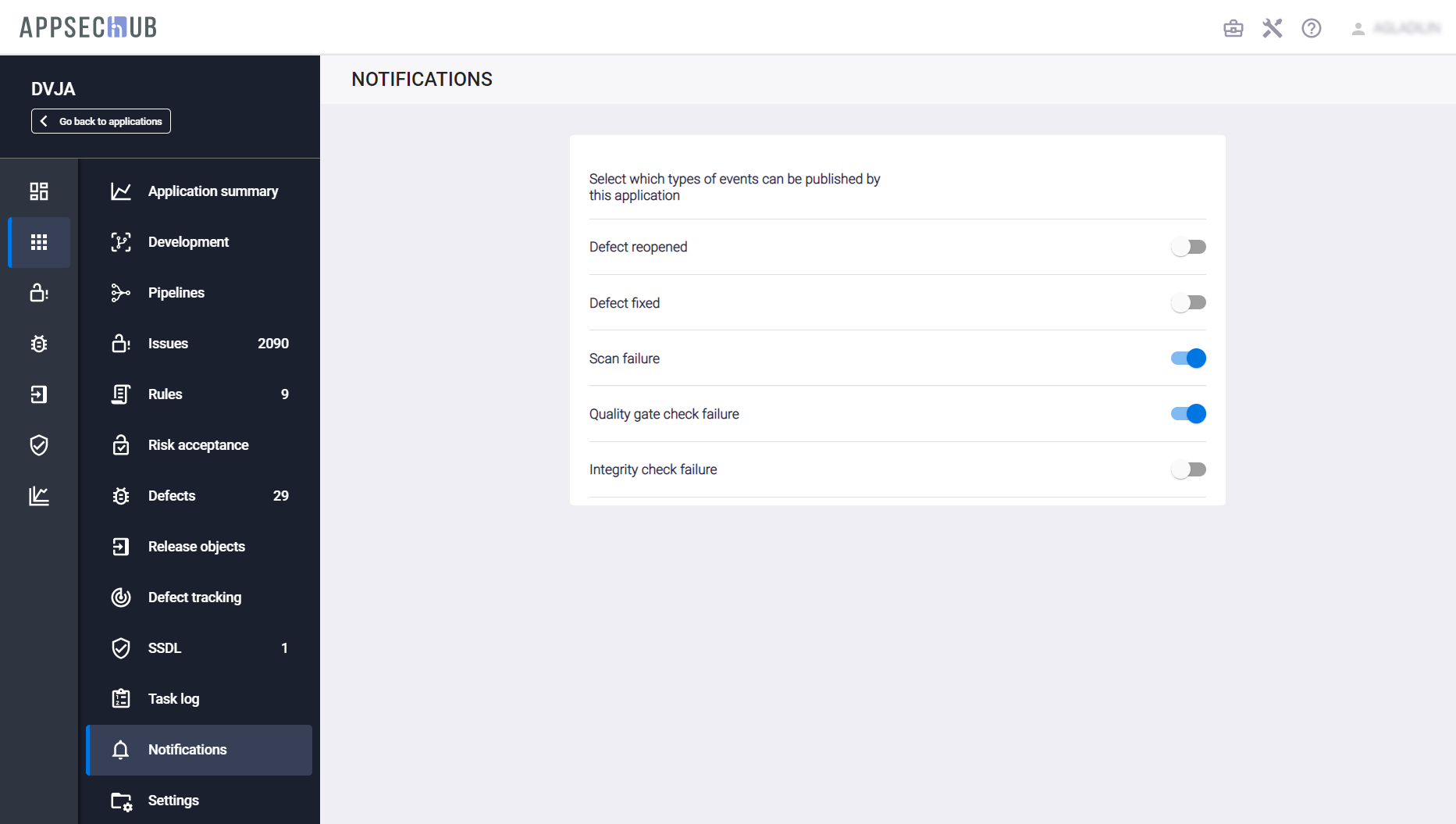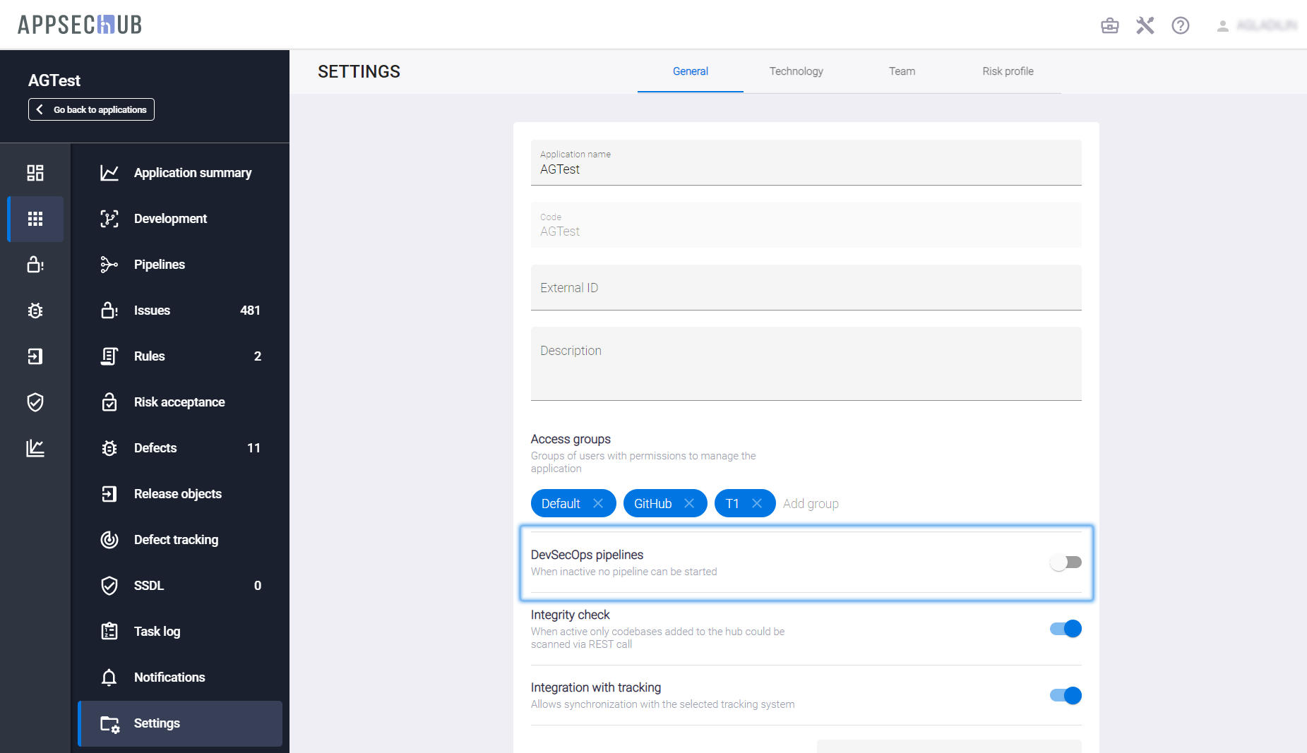 - DevSecOps pipelines — если этот переключатель выключен, security pipelines для этого приложения не могут быть запущены.