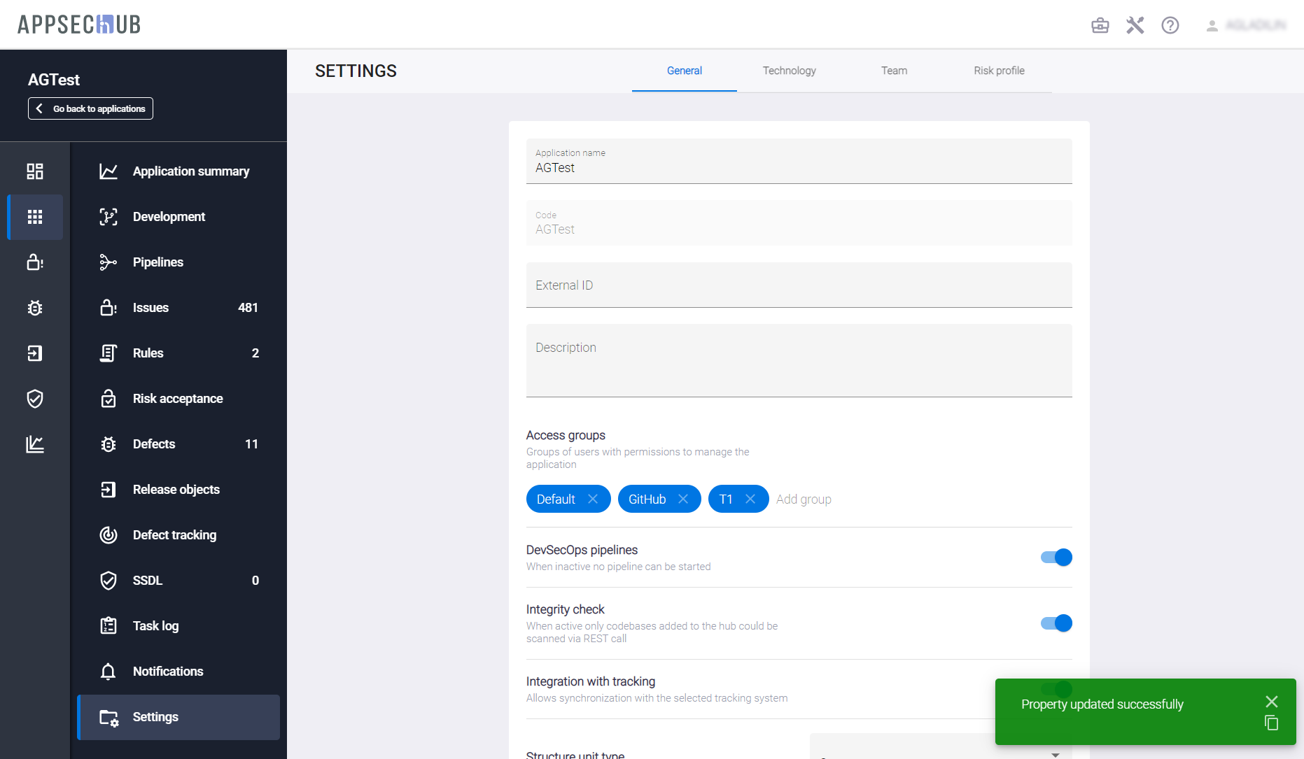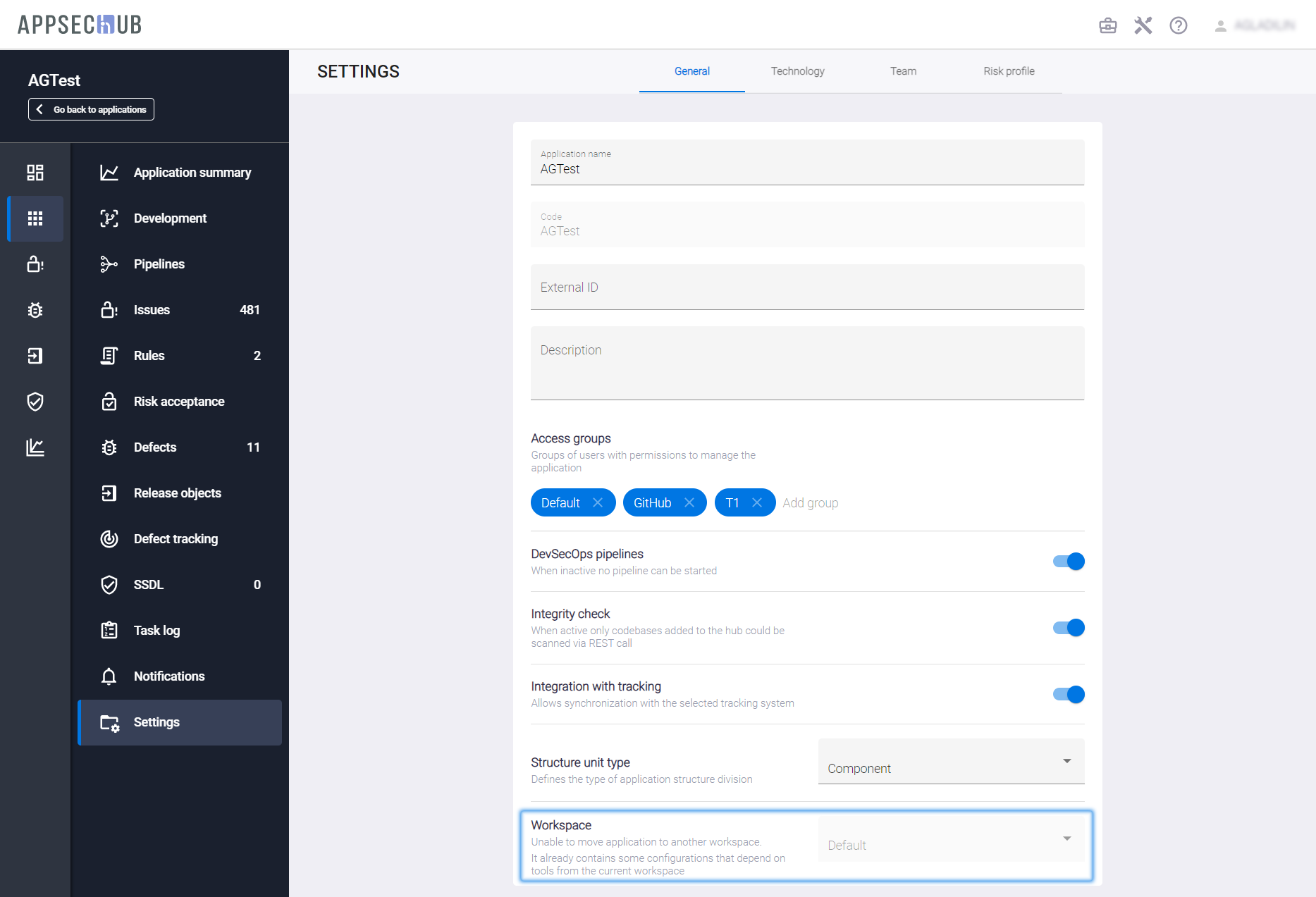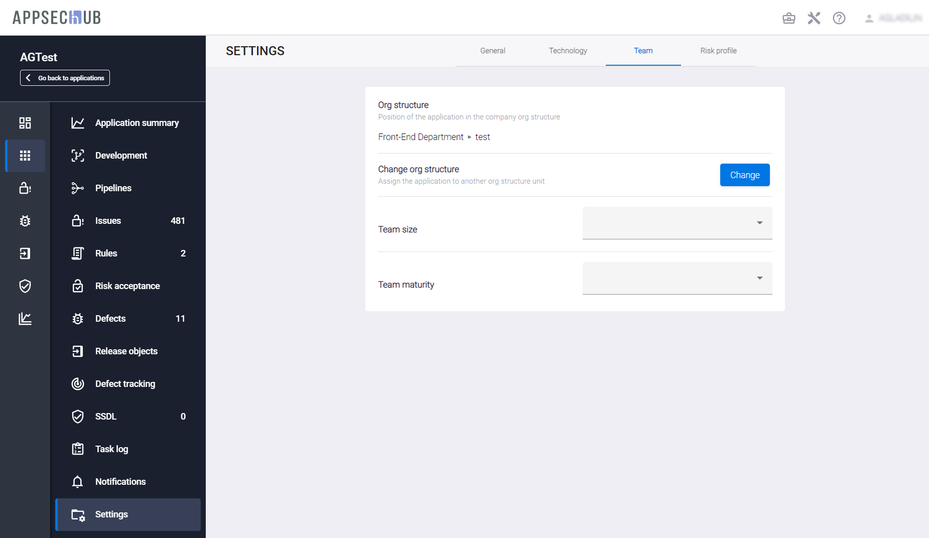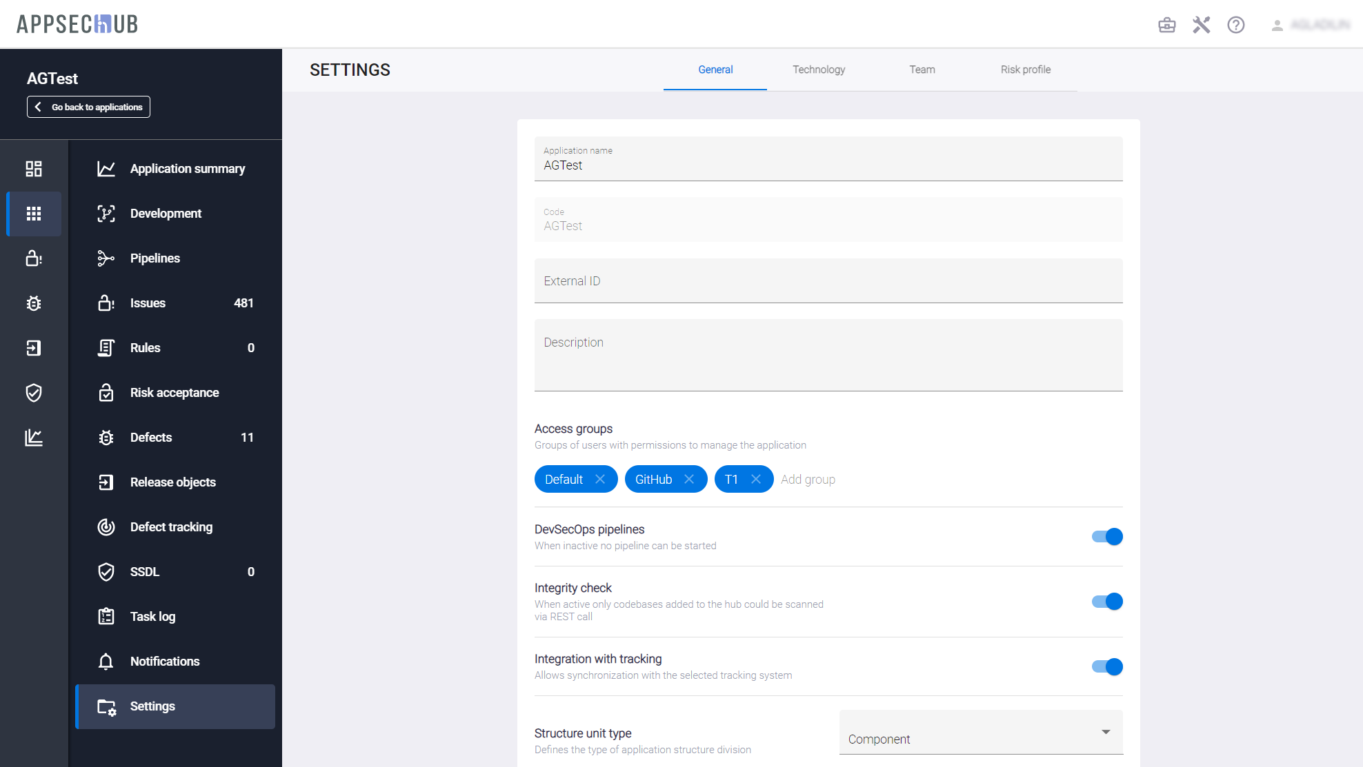 Каждое приложение необходимо настроить и сконфигурировать до того, как члены команды начнут работать с ним в системе. Конфигурация приложения в AppSec.Hub охватывает несколько областей.