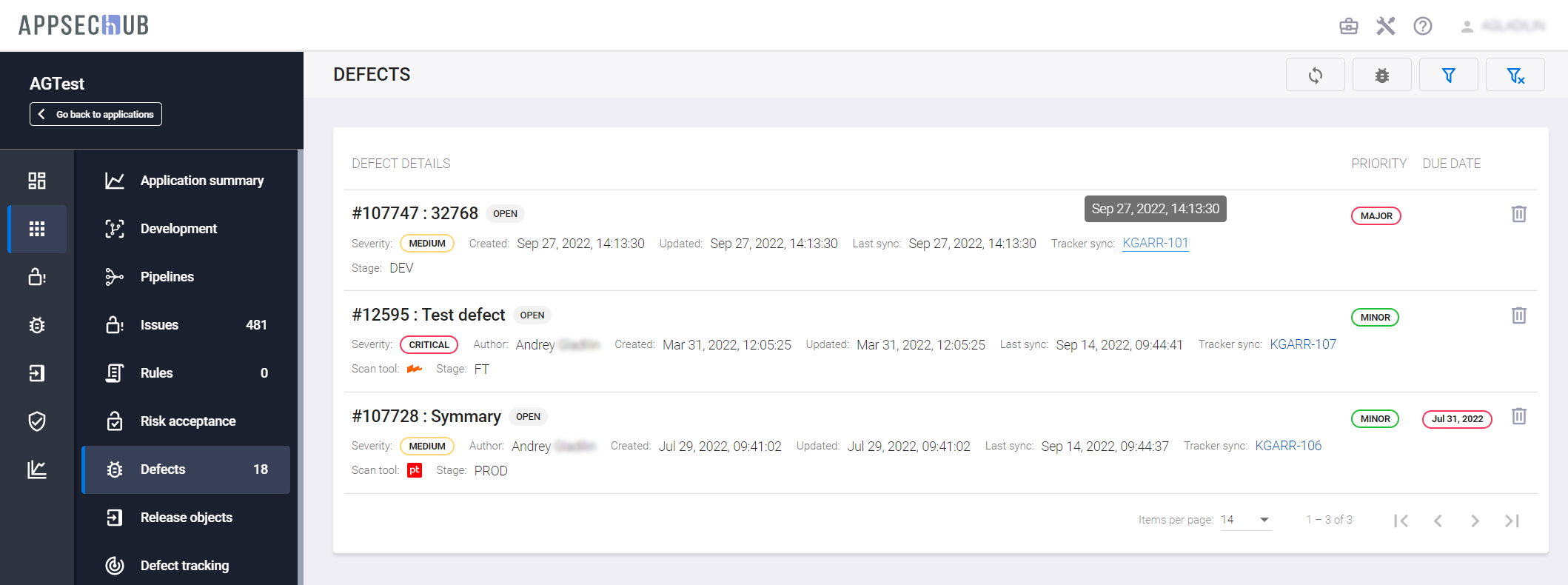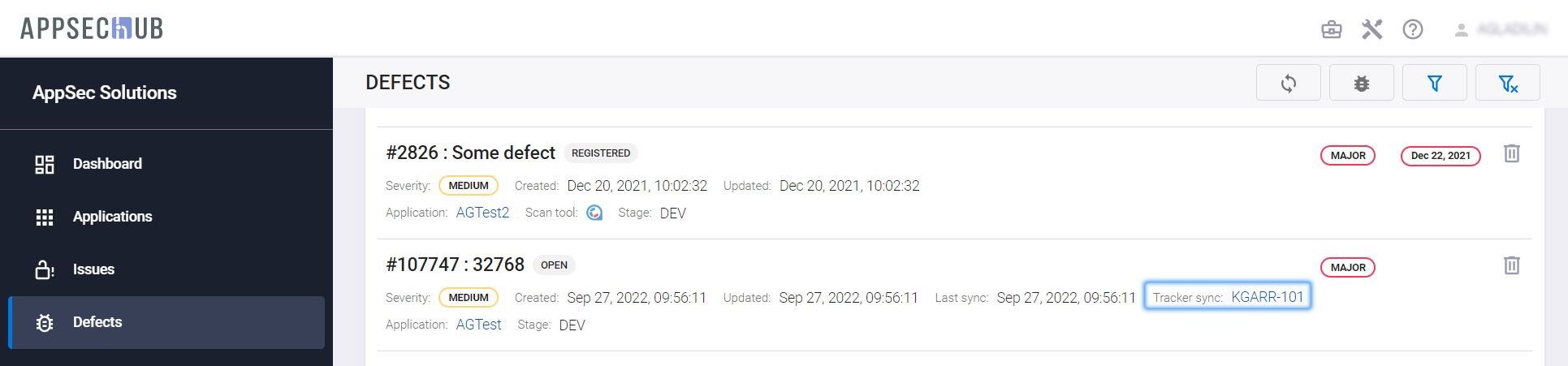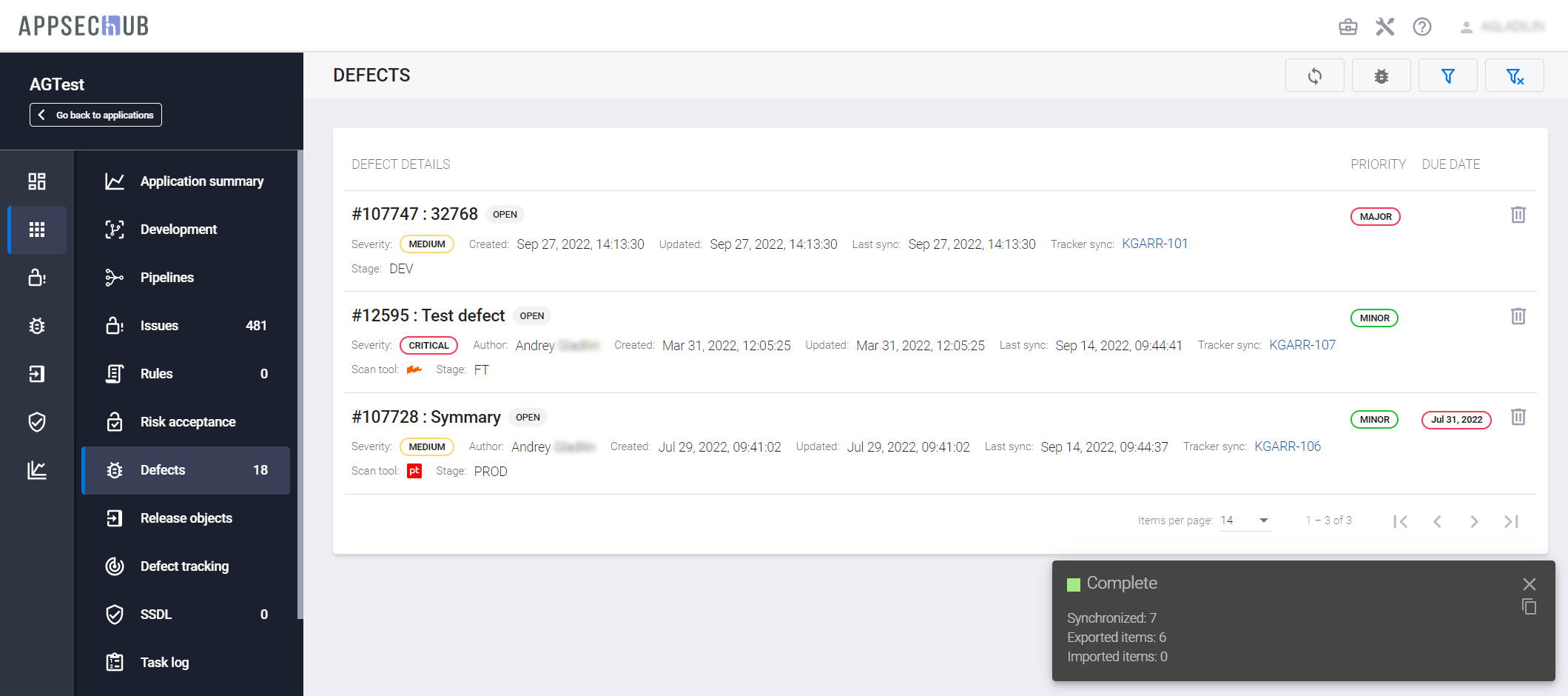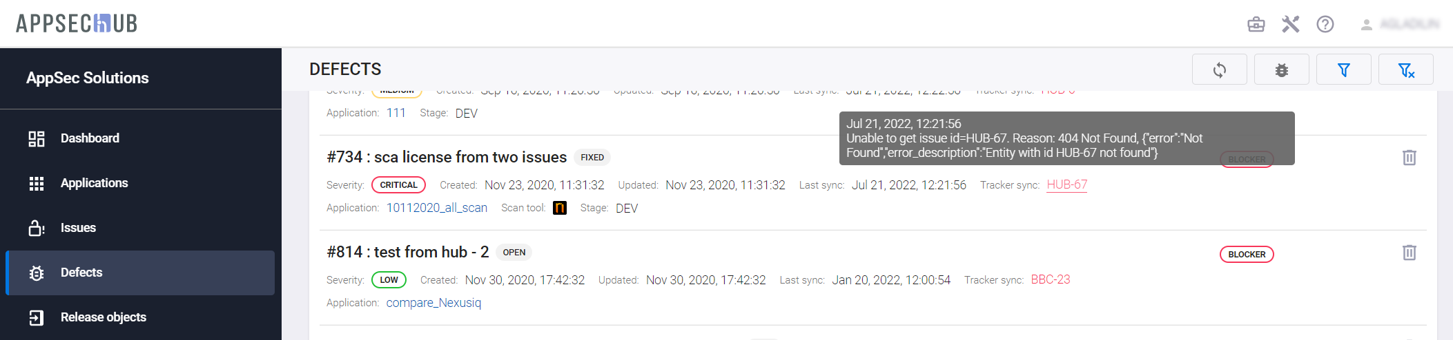 Предположим, что в AppSec.Hub был создан или обновлен один или несколько дефектов безопасности. Все вновь созданные или обновленные дефекты безопасности необходимо синхронизировать с проектной системой отслеживания дефектов (Jira или YouTrack).