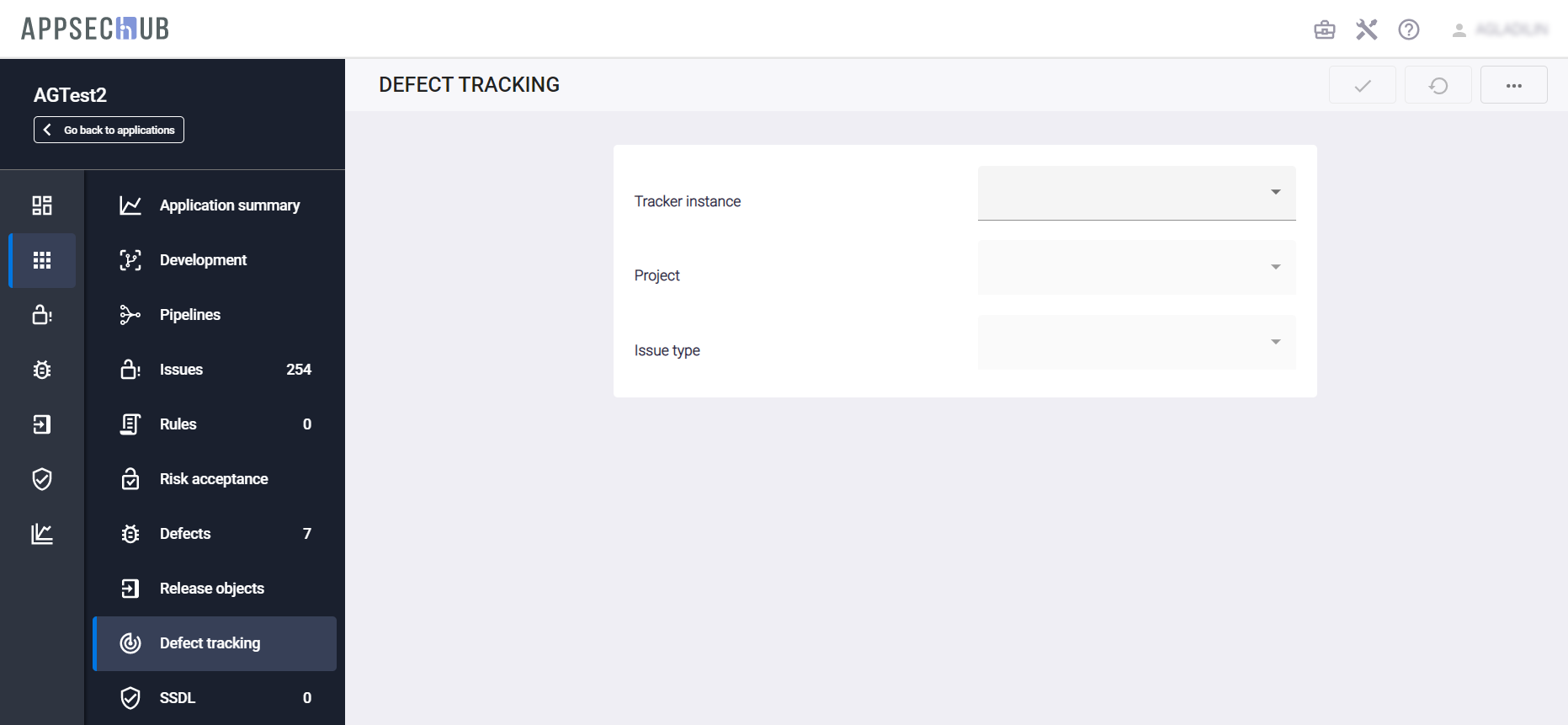 Выберите пункт меню Defect tracking в меню, расположенном слева.
