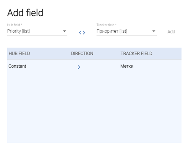 , расположенную в строке справа, чтобы изменить синхронизацию на двунаправленную. Появится окно редактирования поля Edit field. В этом окне несколько раз нажмите на указатель направления > между полями Hub field и Tracker field. Значок направления при этом меняется между знаками однонаправленной синхронизации > и <, и знаком двунаправленной синхронизации <>.