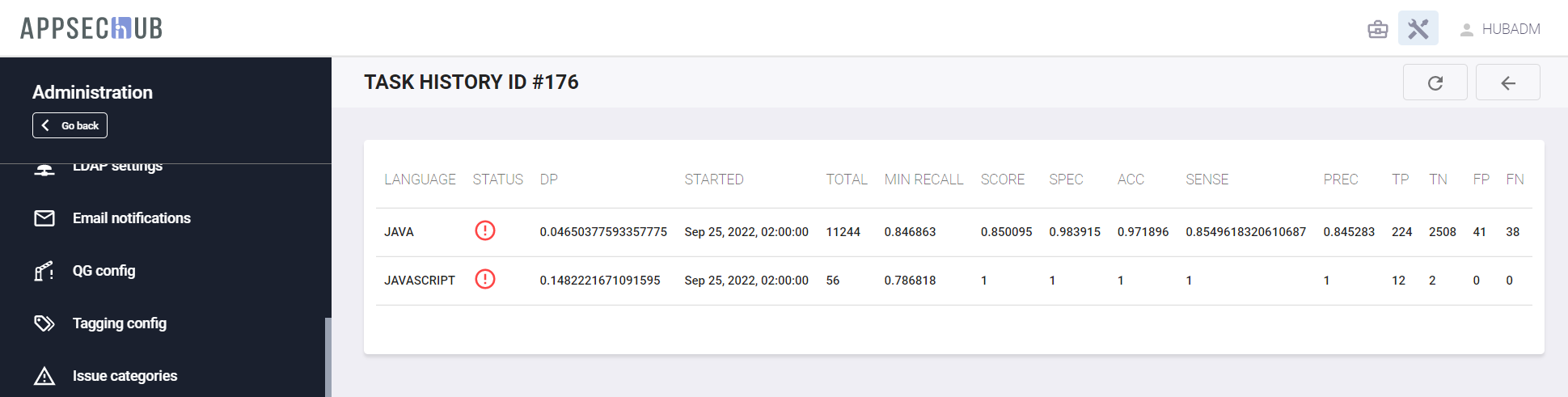 - FN (False Negative) — Количество security issues, на которые модель указала, что это не security issue.