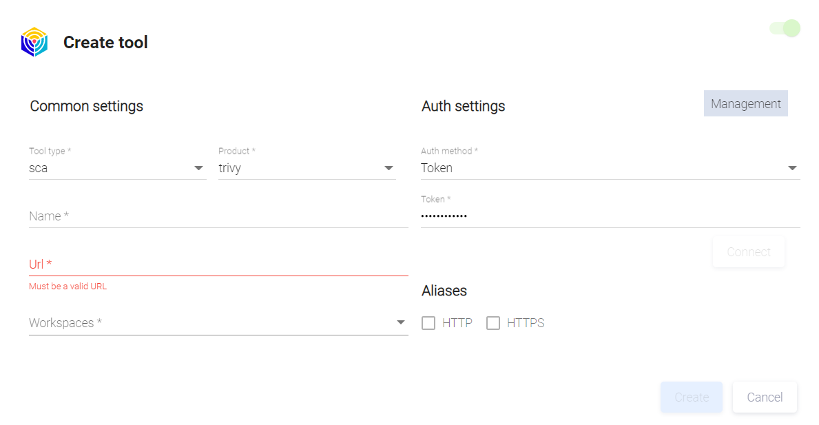 - В поле URL укажите URL для инструмента Aqua Security.