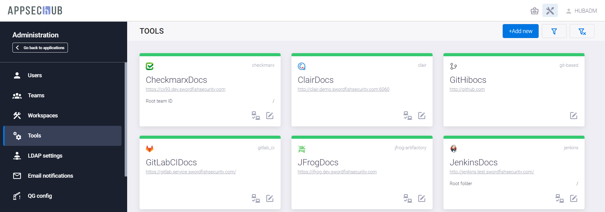 После того как новое рабочее пространство создано, Администратор может привязать к нему инструменты, используя пункт меню Tools в консоли Administration.