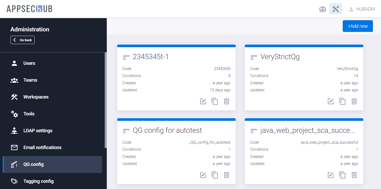Выберите пункт меню QG Config и нажмите кнопку +Add new.