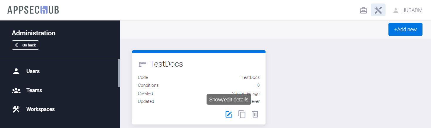 Чтобы перейти к настройке профиля Quality Gate, нажмите иконку Show/edit details в правом нижнем углу его карточки. Более подробная информация о создании профиля Quality Gates приведена выше в разделе «Создание профиля Quality Gate».