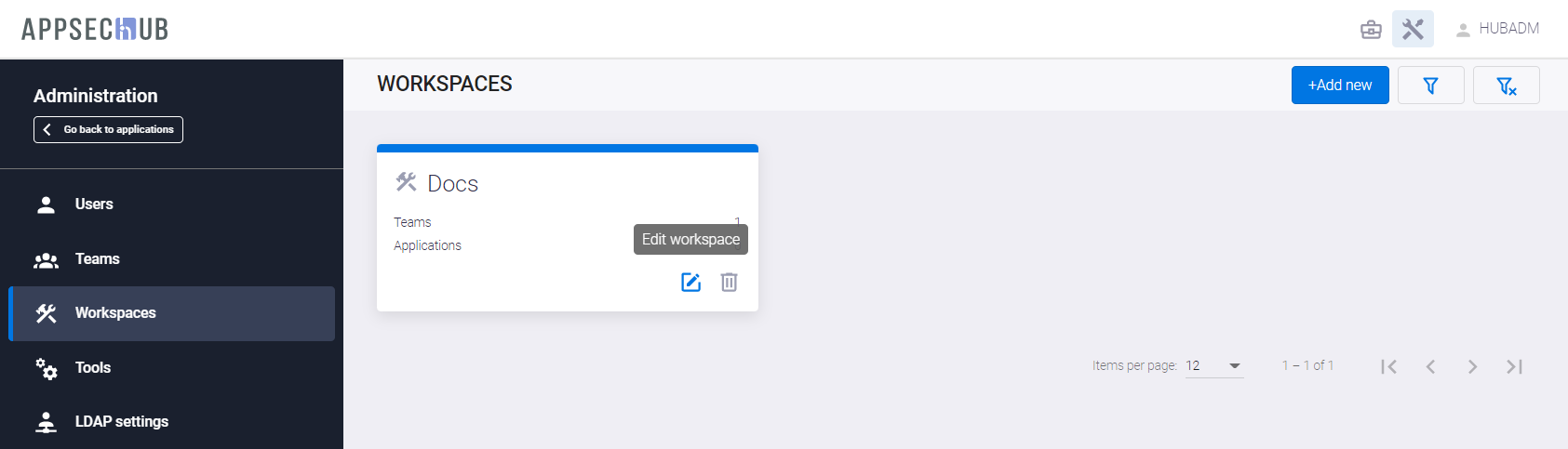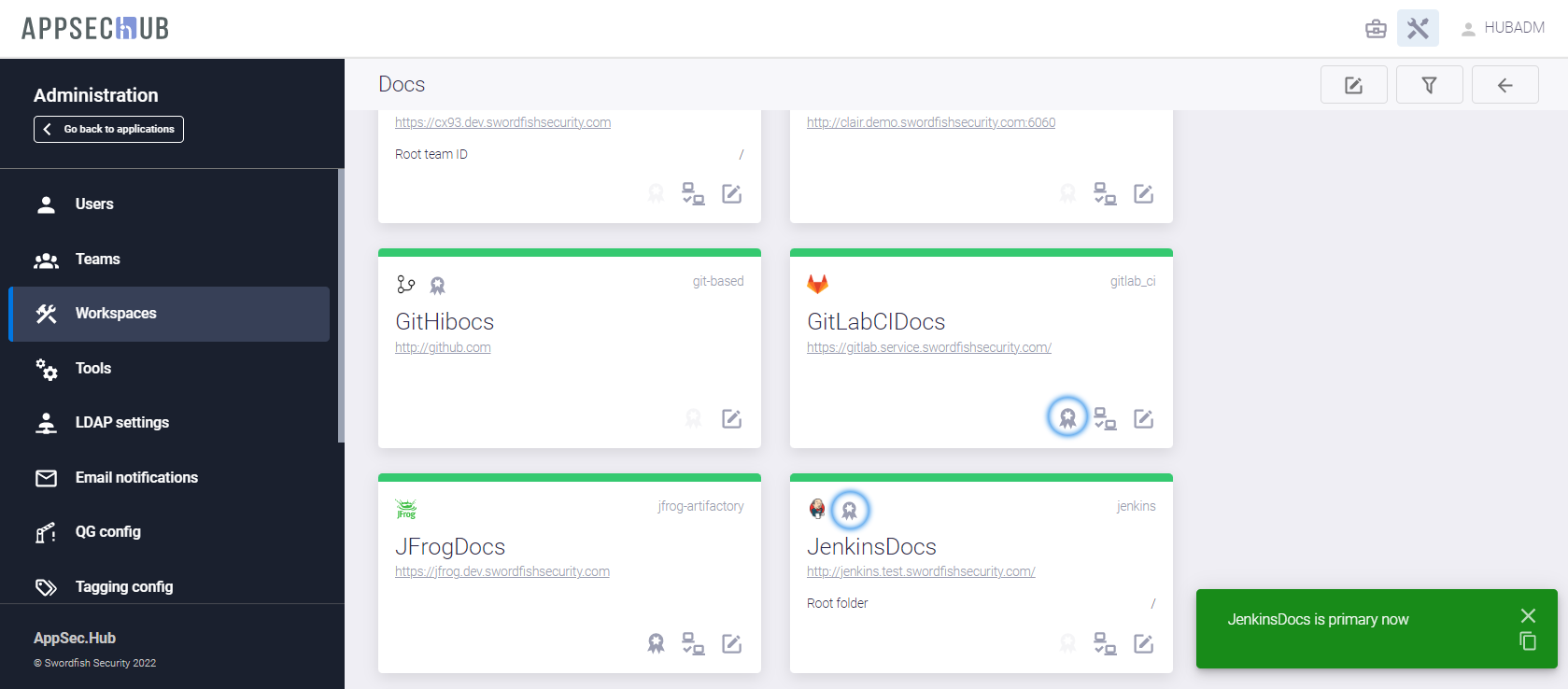 , расположенную в правом верхнем углу пользовательского интерфейса, перейдите на экран администрирования AppSec.Hub.