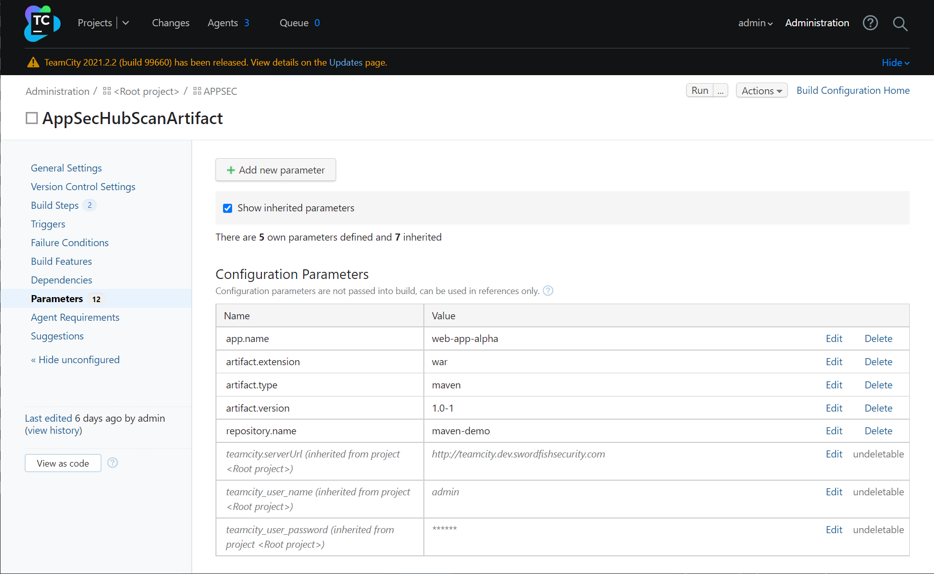 Конфигурационный файл будет загружен в корневой проект TeamCity и, соответственно, будет доступен для всех остальных проектов более низкого уровня, в которых, в свою очередь, он может быть добавлен в качестве одного из этапов пайплайна (Build Step) TeamCity.