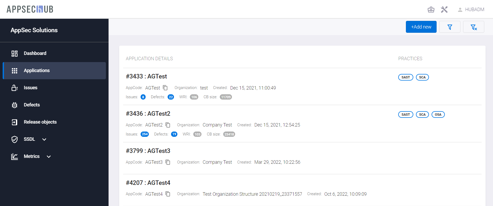 Выберите пункт меню Applications и нажмите кнопку +Add new, чтобы создать новое приложение.