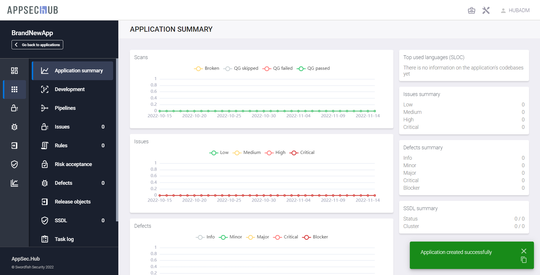 Если процесс создания приложения завершился успешно, в правом нижнем углу страницы Applications появится соответствующее подтверждающее сообщение.