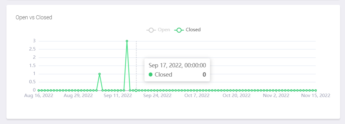 На графике Open vs Closed есть возможность выбрать только открытые или закрытые дефекты. Нажмите на графике элемент Open или Closed, чтобы включить или исключить соответствующие дефекты из графика.