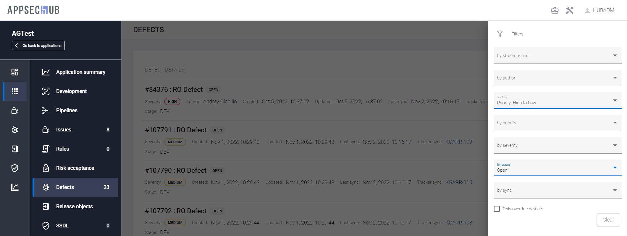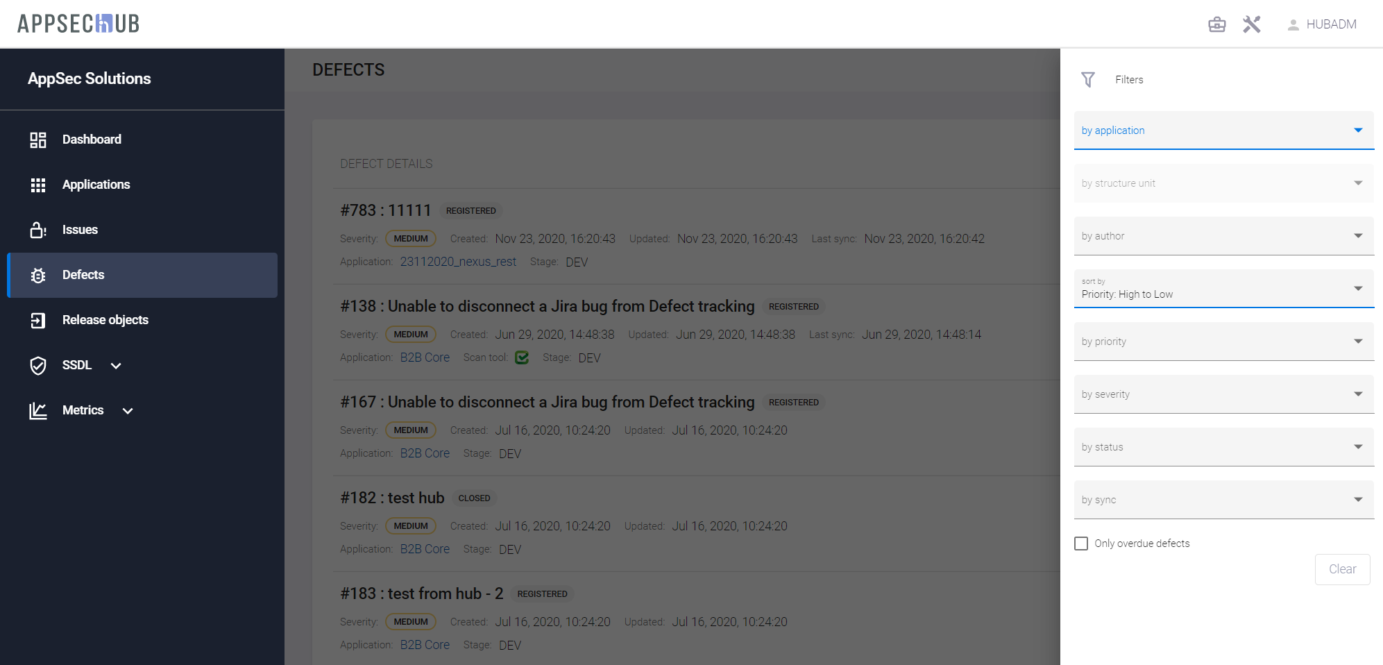 AppSec.Hub позволяет синхронизировать дефекты как для одного выбранного приложения, так и для всех приложений, к которым пользователь имеет доступ.