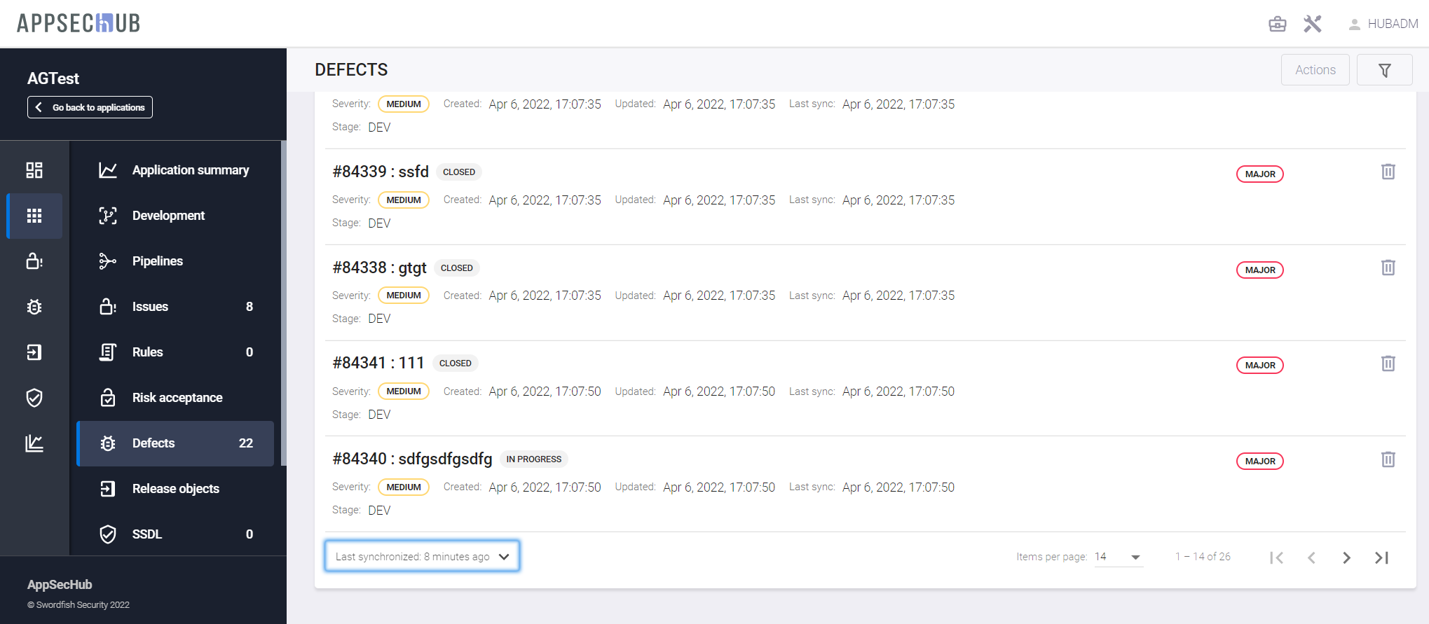 Каждый дефект безопасности должен быть исправлен командой разработчиков приложения. Когда дефект исправлен, разработчики меняют статус дефекта безопасности Jira на Fixed. Теперь дефект необходимо синхронизировать между Jira и AppSec.Hub.