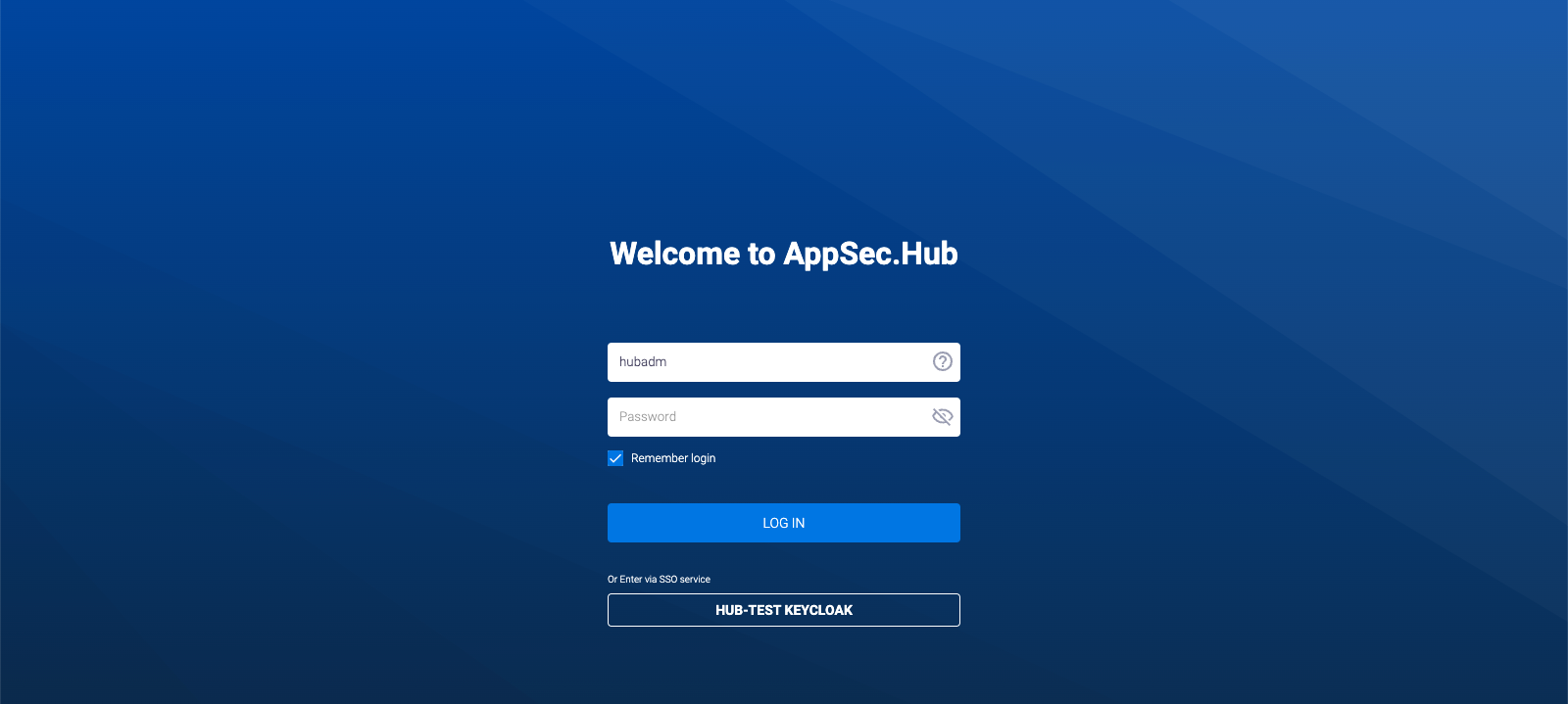 Авторизуйтесь в открывшемся окне SSO-сервиса. После успешной авторизации в окне SSO-сервиса пользователь будет перенаправлен в AppSec.Hub для продолжения работы в системе.