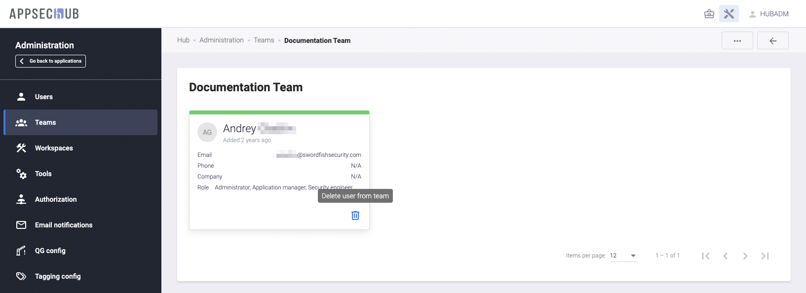 Выберите роль(и) пользователя в поле Hub Roles (Administrator, Manager, Security Engineer, Developer).