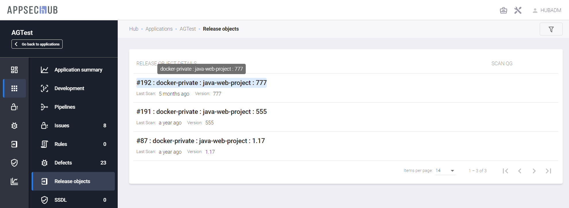 С точки зрения обеспечения безопасности приложения, конечной целью является проверка безопасности сборки приложения, поставляемой конечному пользователю (клиенту). Для выполнения таких проверок в AppSec.Hub реализована работа с релизными объектами.
