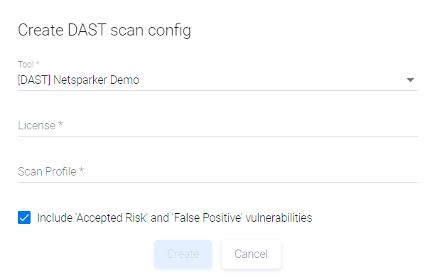 В появившемся окне Create DAST scan config выберите инструмент в поле Tool.