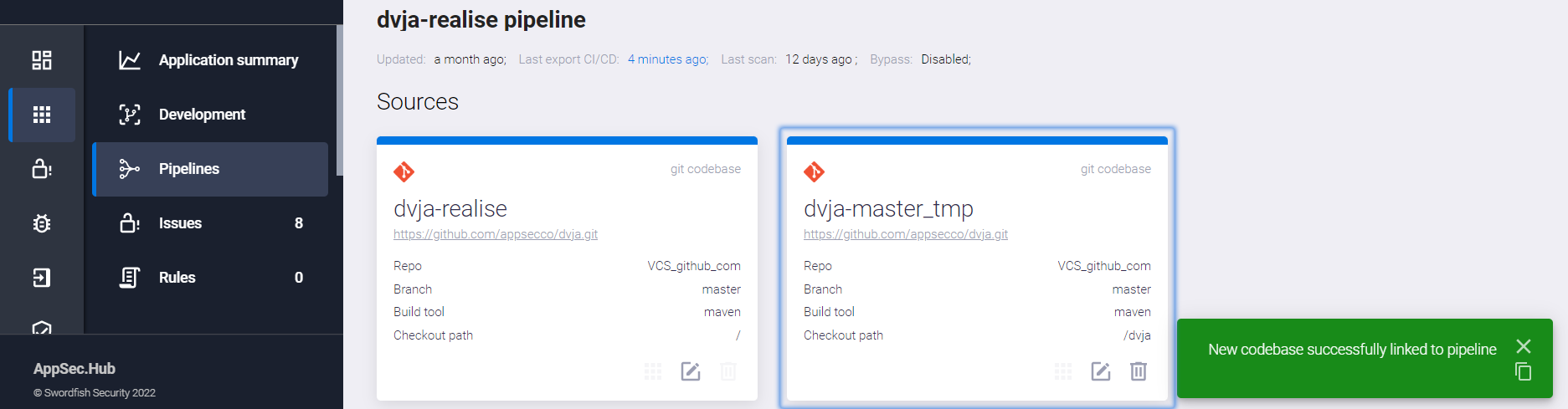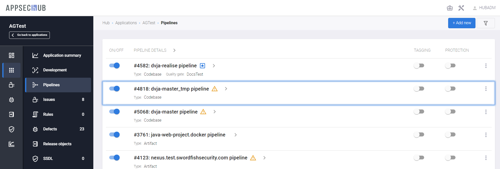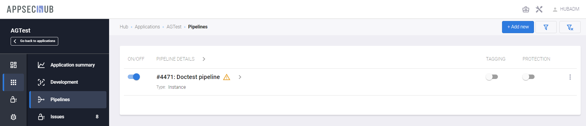 Новый Security Pipeline экземпляра приложения появится на странице Pipelines.