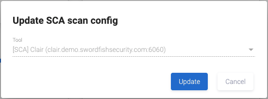 на карточке инструмента сканирования, чтобы настроить параметры сканирования в окне Update SCA scan config.