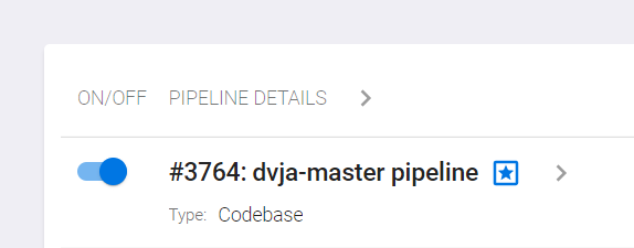 ON/OFF — если этот переключатель выключен и имеет серый цвет, Security Pipeline не может быть запущен на сканирование. Если переключатель включен и имеет синий цвет, Security Pipeline может быть запущен на сканирование.