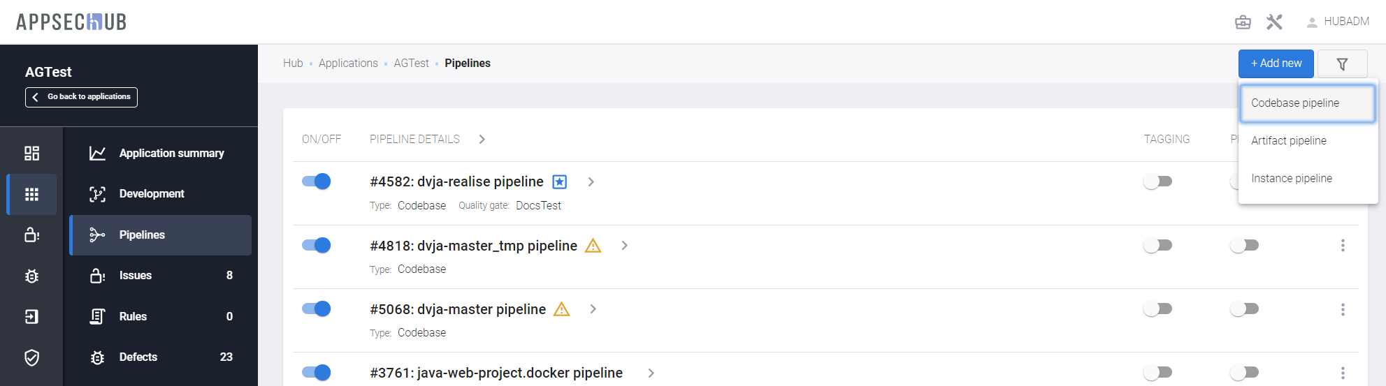 AppSec.Hub предоставляет возможность настройки существующих и создания новых Security Pipelines, а также запуска сканирования безопасности с их помощью.