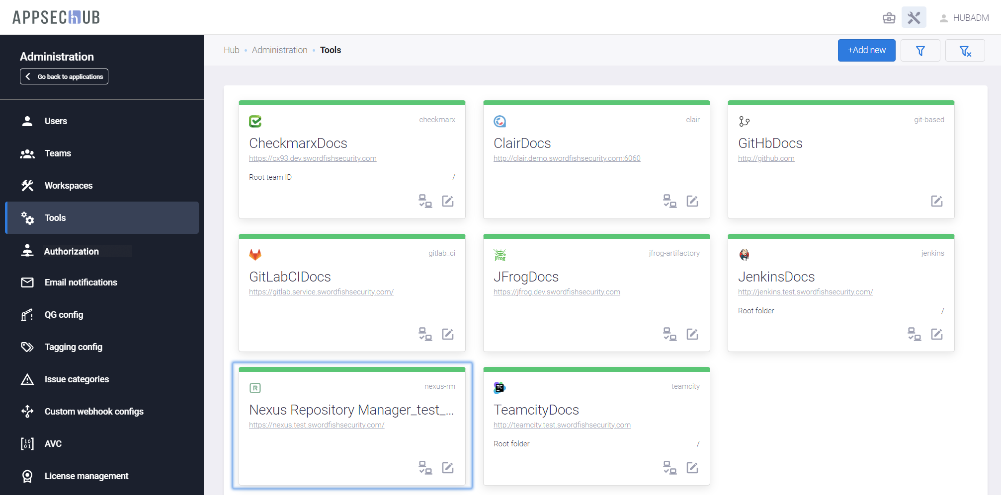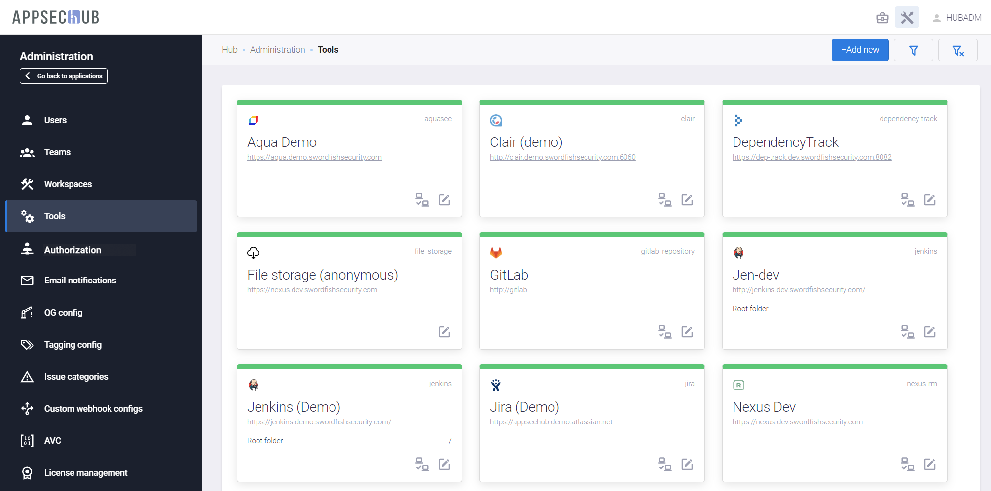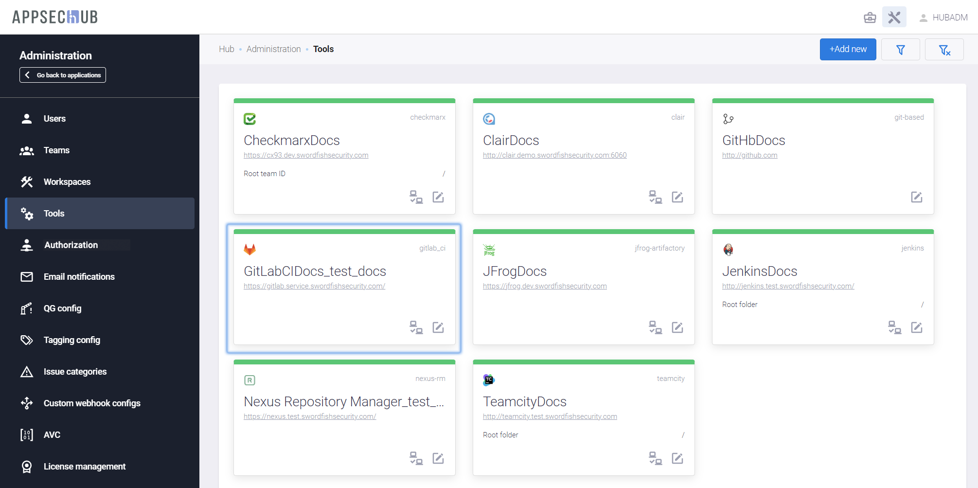 Нажмите кнопку +Add new в правом верхнем углу страницы Tools, чтобы начать подключение нового инструмента.